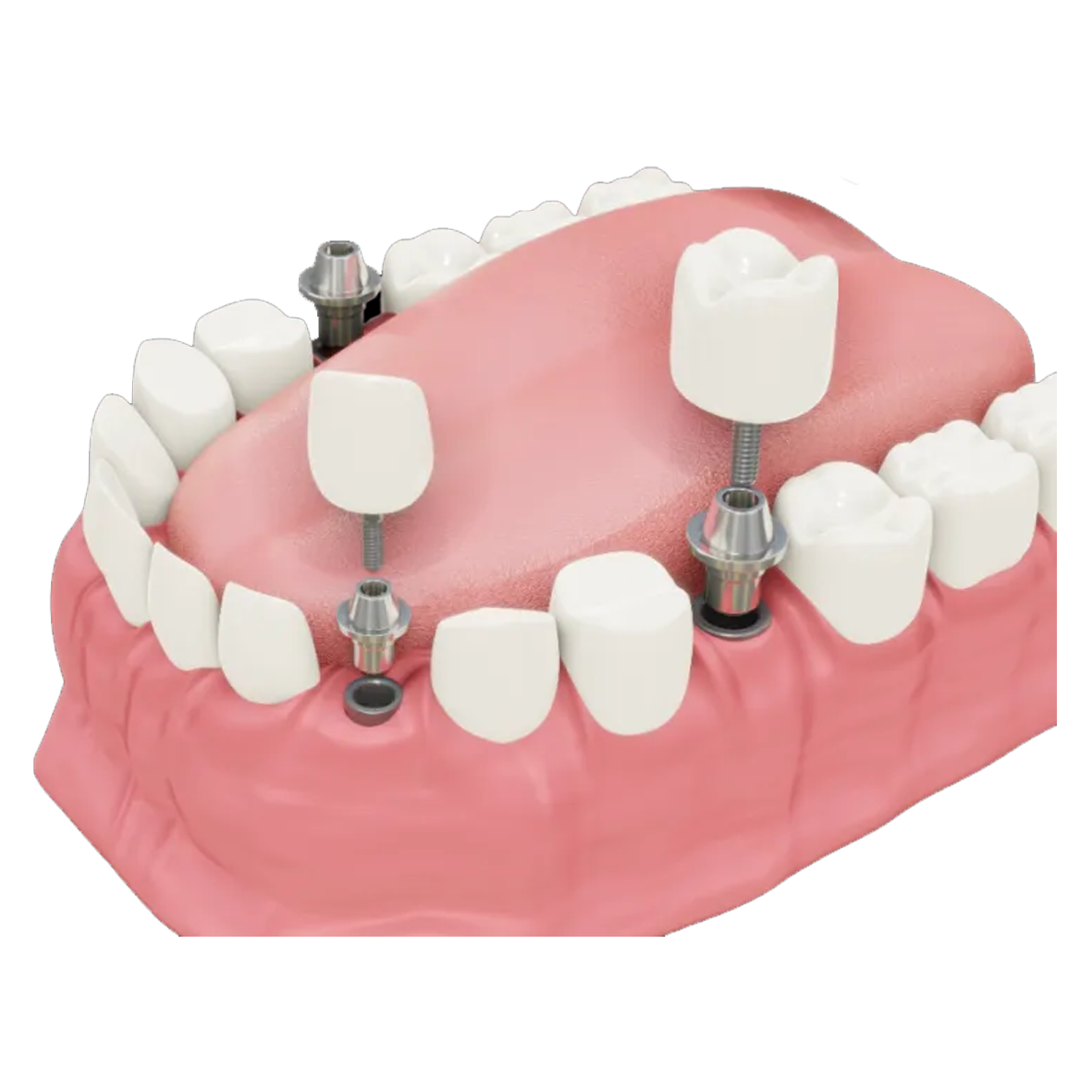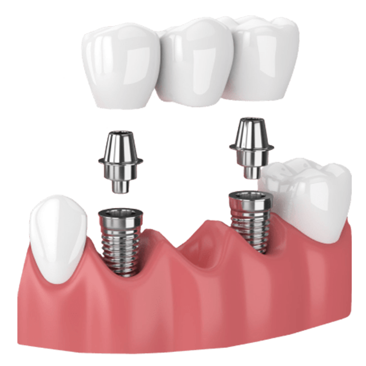 При втраті цілої групи зубів також можна скористатися протезуванням, проте звичайний протез впливає на мовлення, погіршує сприйняття їжі та здебільшого виглядає неприродно. Саме імплантація зубів забезпечує максимально міцну фіксацію, правильний розподіл жувального навантаження, натуральний зовнішній вигляд зубів та практично необмежений термін служби.