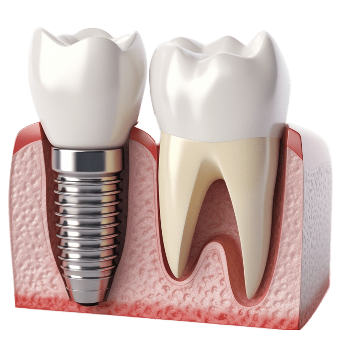 Технологія вживлення титанового стрижня в кісткову тканину з подальшим встановленням коронки успішно практикується у світі вже не одне десятиліття. Вживлення імпланту замість відсутнього зуба без обточування сусідніх здорових зубів (як і з мостовидними протезами) одна із головних переваг даного методу.