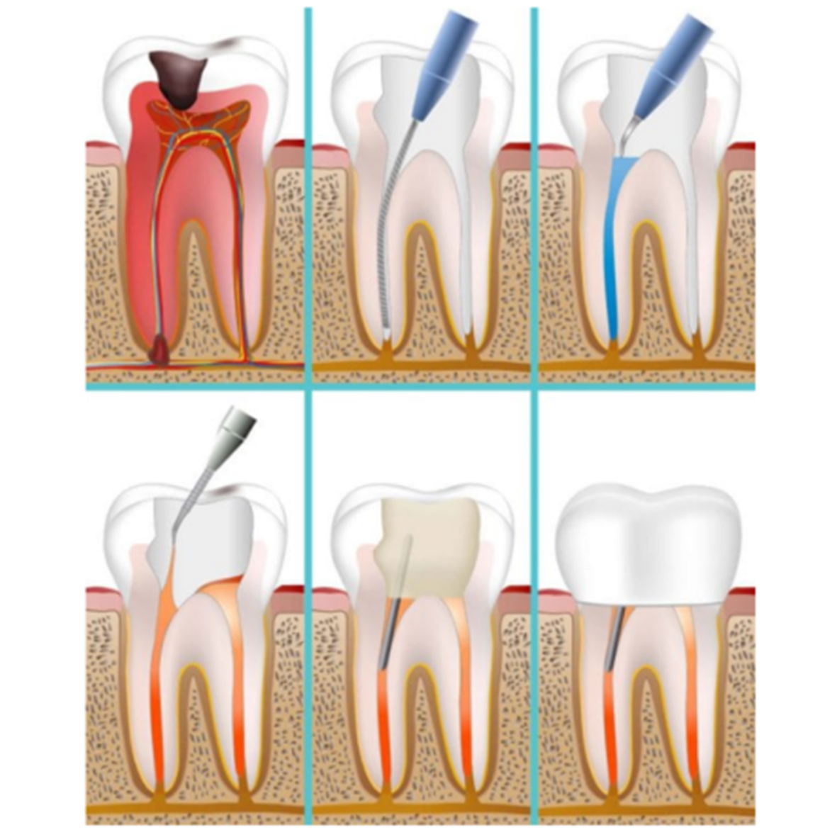 Процес лікування каналів зуба полягає в ретельній механічній та медикаментозній обробці кореневих каналів, з подальшим їх герметичним пломбуванням по всій довжині. Процедура проводиться під місцевою анестезією або седацією.