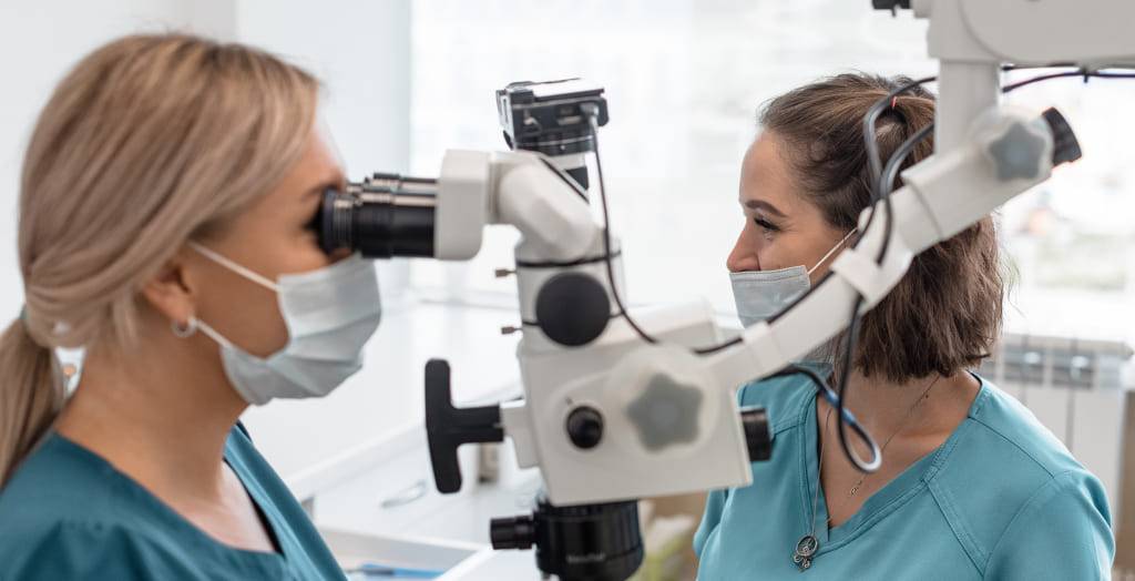 При ендодонтії в клініці “Інетерстом” використовується мікроскоп: товщина каналів по розміру приблизно як кінчик голки, побачити всі канали неозброєним поглядом неможливо, не кажучи вже про те, що знаходиться всередині них. В тому самому зубі в однієї людини може бути 3 канали, в іншої 4, а в наступного 7. Є основні магістральні канали, які знайти найпростіше, але пошук інших каналів не менш важлива задача, так як без них можна вважати, що лікування не пройшло повною мірою.
